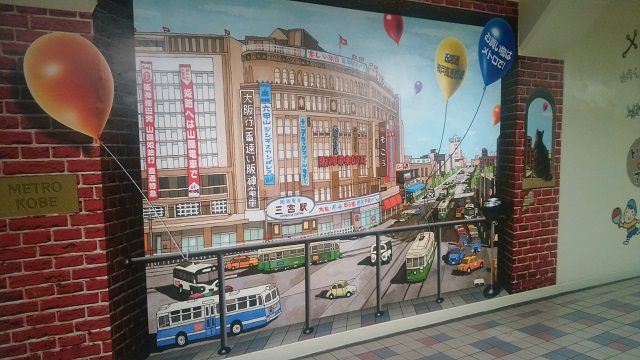 新開地メトロの壁に絵が描かれているのを