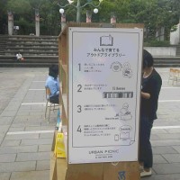 I found a temporary library in Higashi park.