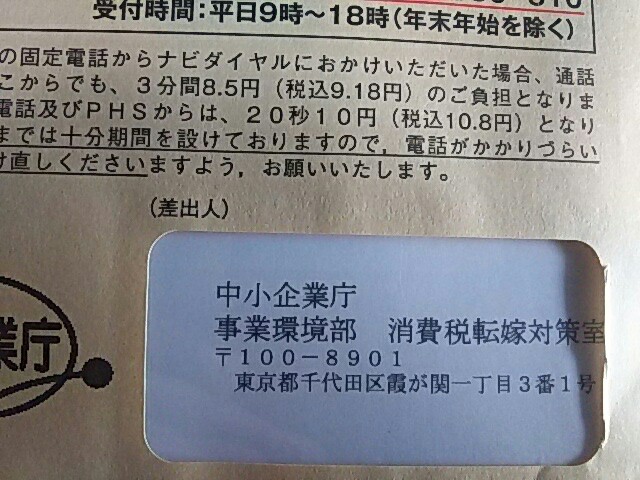中小企業庁から消費税にまつわるアンケートが