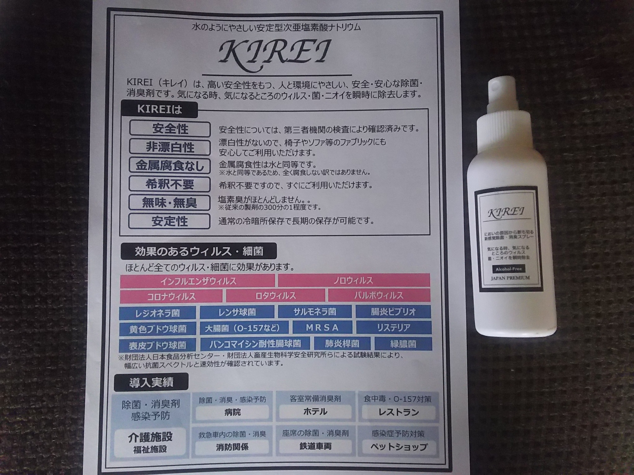KIREIという除菌消臭剤がニーズありそうですね