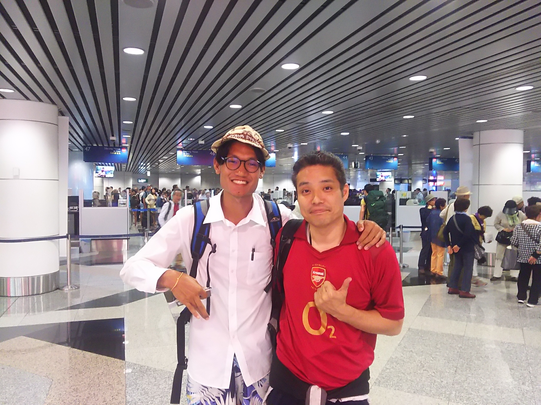 並んでいる後ろのタイ人のバックパッカーと