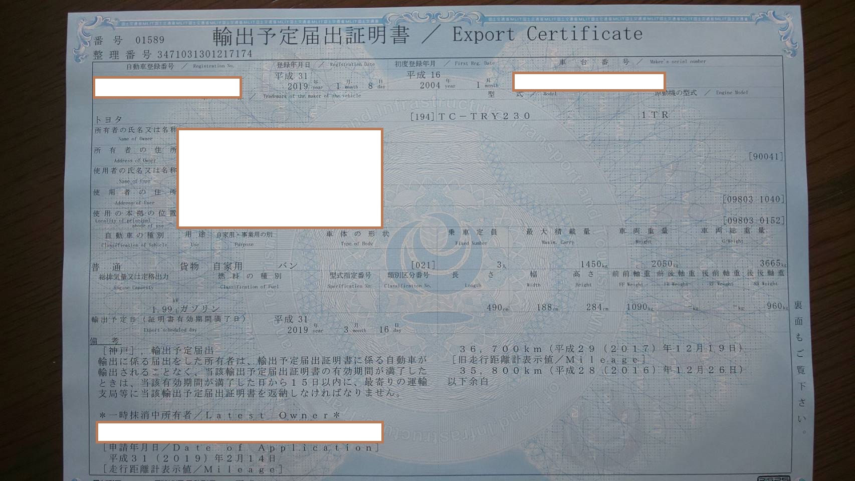 そして輸出の届出も終わりました。
